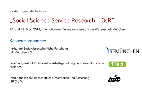 Die Initiative “Social Science Service Research – 3sR” hat am 27. und 28. März 2014 in München ihre zweite wissenschaftliche Tagung veranstaltet. Im Rahmen der Veranstaltung stand die Frage im Mittelpunkt, welche spezifischen Potenziale die sozialwissenschaftliche Dienstleistungsforschung zum besseren Verständnis bzw. zur Erklärung des gesellschaftlichen Wandels beisteuern kann.