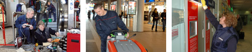 Bei der Deutschen Bahn AG wirft PiA nicht nur einen Blick „hinter die Kulissen“ großer Bahnhöfe, sondern auch auf das Beziehungsdreieck Auftraggeber – Dienstleister – Kunde: Im Mittelpunkt stehen einerseits Infrastrukturdienstleistungen der DB Services Gruppe der DB AG (Reinigung, Haustechnik) und damit Dienstleistungen, die unverzichtbar sind – aber oft übersehen werden. Und andererseits die KundInnen, für die ein Bahnhof oft viel mehr ist als nur eine Station.